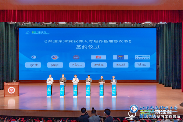 会上,解江凌代表学校与燕山大学、天津市大学软件学院、华为技术有限公司、奇安信科技集团股份有限公司、霍尼韦尔(中国)有限公司共同签署了《共建京津冀软件人才培养基地协议书》。