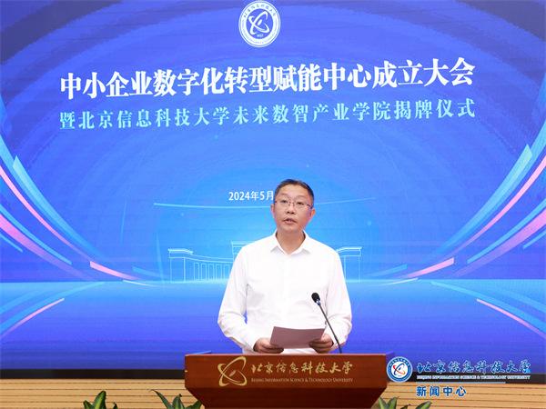 于英杰代表北京市委教育工委、北京市教委,向赋能中心的成立表示祝贺。他表示,近年来,北京市牢牢把握首都城市战略定位,着力构建制造业数字化转型体系,加速推进国际科技创新中心建设。赋能中心和学校未来数智产业学院的建设,是深入贯彻党的二十大精神,落实教育、科技、人才协同发展,推动产教融合、科教融汇,以有组织科研和人才培养,助力首都经济社会高质量发展的又一重要举措,必将对推动中小企业数字化转型,提高人才自主培养质量,推动新质生产力的形成和发展起到积极作用。他对中心的建设提出三点希望:一是锚定产业发展需求,着力探索中小企业数字化转型的新路径;二是加强校地、校企合作,着力打造产教融合,协同育人新范式;三是做大做强优势学科,着力积淀市属高校分类发展的新经验。期待赋能中心和产业学院成为高校“产教深融合嵌入式”人才培养改革的成功范例,更好助力首都经济社会高质量发展!