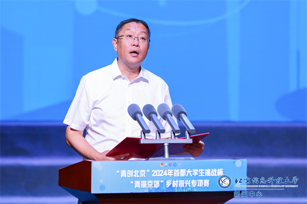解江凌代表学校向莅临活动的领导来宾表示热烈欢迎,向参赛的高校团队和师生致以诚挚问候。他表示,“青振京郊”乡村振兴专项赛,聚焦城乡融合发展,引导学生根据京郊发展现实需求,结合科技强农和绿色发展理念,提出创意想法及落地方案,解决北京“三农”发展的实际问题,是落实市委“百村示范、千村振兴”工程部署的重要举措。赛事收到的每份方案都是青年视角下对于乡村振兴的深度解读,凝聚着智慧汗水,闪烁着创新光芒,更是首都青年积极响应国家号召,以实际行动投身乡村建设,为乡村发展注入青春活力的生动实践。他表示,学校将以本次活动为媒介深入学习先进经验和优秀成果,与兄弟高校一起主动融入首都发展大局,充分发挥资源优势与育人特色,深化校地企合作机制,团结引领广大青年积极投身乡村振兴建设,为服务国家和首都高质量发展、助力中国式现代化建设贡献智慧和力量!