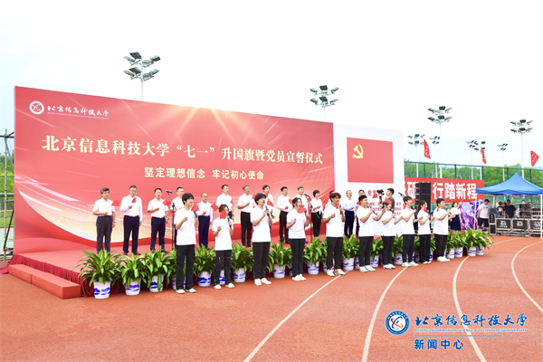 小营校区、酒仙桥校区也于同一时间分别开展了“七一”升国旗暨党员宣誓活动。离退休党委组织30余名老党员在小营校区参加升旗仪式。