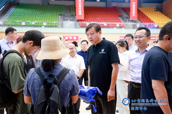 本次迎新也受到了学校党委的高度重视。上午9时起,校党委副书记、校长郭福带队深入沙河和小营校区迎新现场,全面了解新生报到情况,关心慰问在场工作人员,并与新生和家长亲切交流。在相关人员的指引下,郭福依次来到各展位,询问报到进展、生源分布、专业设置、人才培养、国际化办学、学生组织建设,以及后续的军训、入学教育等情况,并给予指导。
