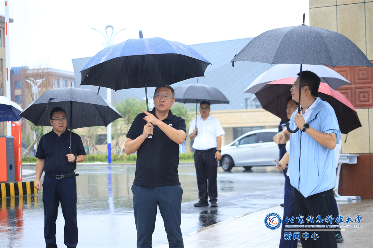 座谈会前,解江凌一行深入校园各区域进行了细致检查。 他实地察看了校园内外整体建设进展情况,并重点检查了汛期校内道路及排水设施状况,确保安全度汛。在室内体育馆、图书馆、学术报告厅等关键场所,解江凌详细检查设备安装进度,询问各楼宇功能布局、设施配备及运行准备情况。在教室及实验室,他查看了设施安装进展,强调要通过完善硬件设施,有效保障课堂教学形式的多样性和学生活动的丰富性。此外,解江凌还深入学生公寓、食堂及校内物美超市,全面了解学生住宿条件、餐饮服务及后勤保障准备情况,要求切实保障学生生活需求。