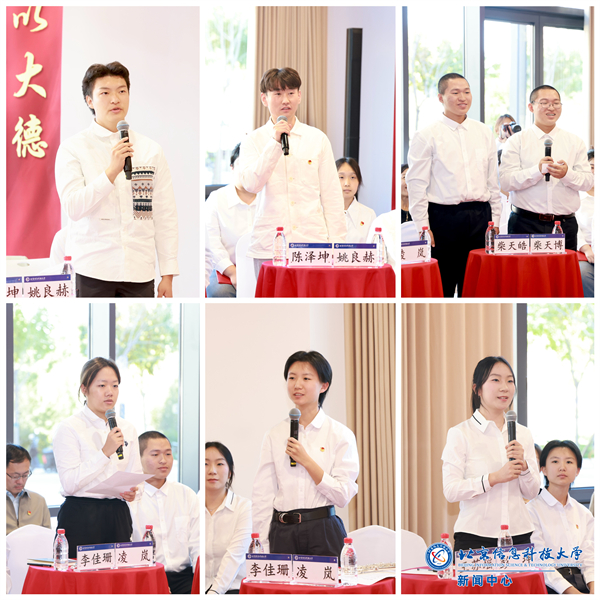 活动中,来自不同学院、不同专业的13名新生代表围绕新中国成立75周年、党的二十届三中全会精神等热点问题,根据自身特点与特长,结合入学一个月的学习、生活和个人成长感悟进行交流发言,与书记和在座师生分享他们与信息科大相知相遇的故事,畅谈他们对“热爱”的坚守与理解,用青春之名告白伟大祖国和信息科大。
