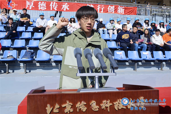开幕式上,运动员代表、光电学院郭昊天同学(曾获首都高校田径赛四金并打破两项纪录)庄严宣誓“尊重规则、奋勇拼搏”;柔道前世界冠军、裁判员代表徐丽丽老师承诺 “公平执裁、护航赛事”。