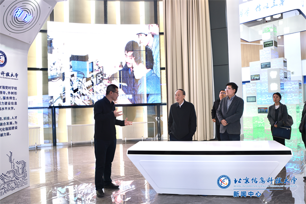 学术报告后,赵春江参观了学校科研成果展,了解了学校科研成果转化情况,并前往自动化学院(人工智能学院)与相关负责人围绕人工智能学院建设有关事宜进行研讨。活动前,赵春江还观看了学校沙河校区沙盘,详细了解了学校新校区建设规划情况。