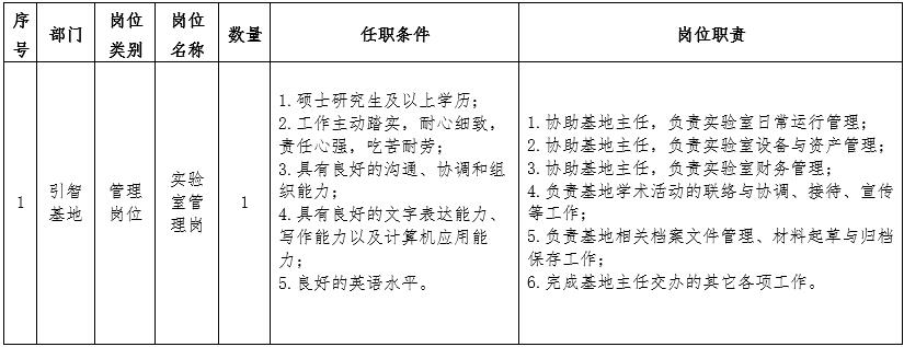 四、本次招聘非事业编管理人员1人,具体岗位要求和需求如下表:
