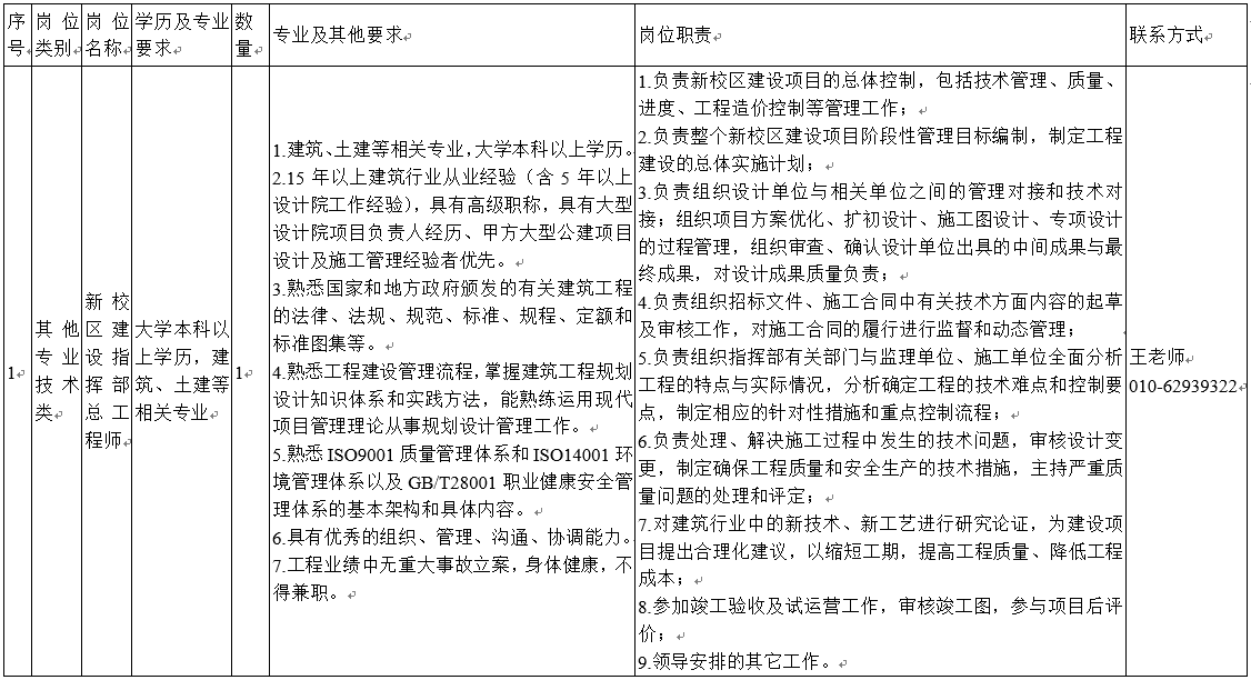 根据工作需要,现面向社会公开招聘非事业编制新校区建设指挥部总工程师岗位,具体如下: