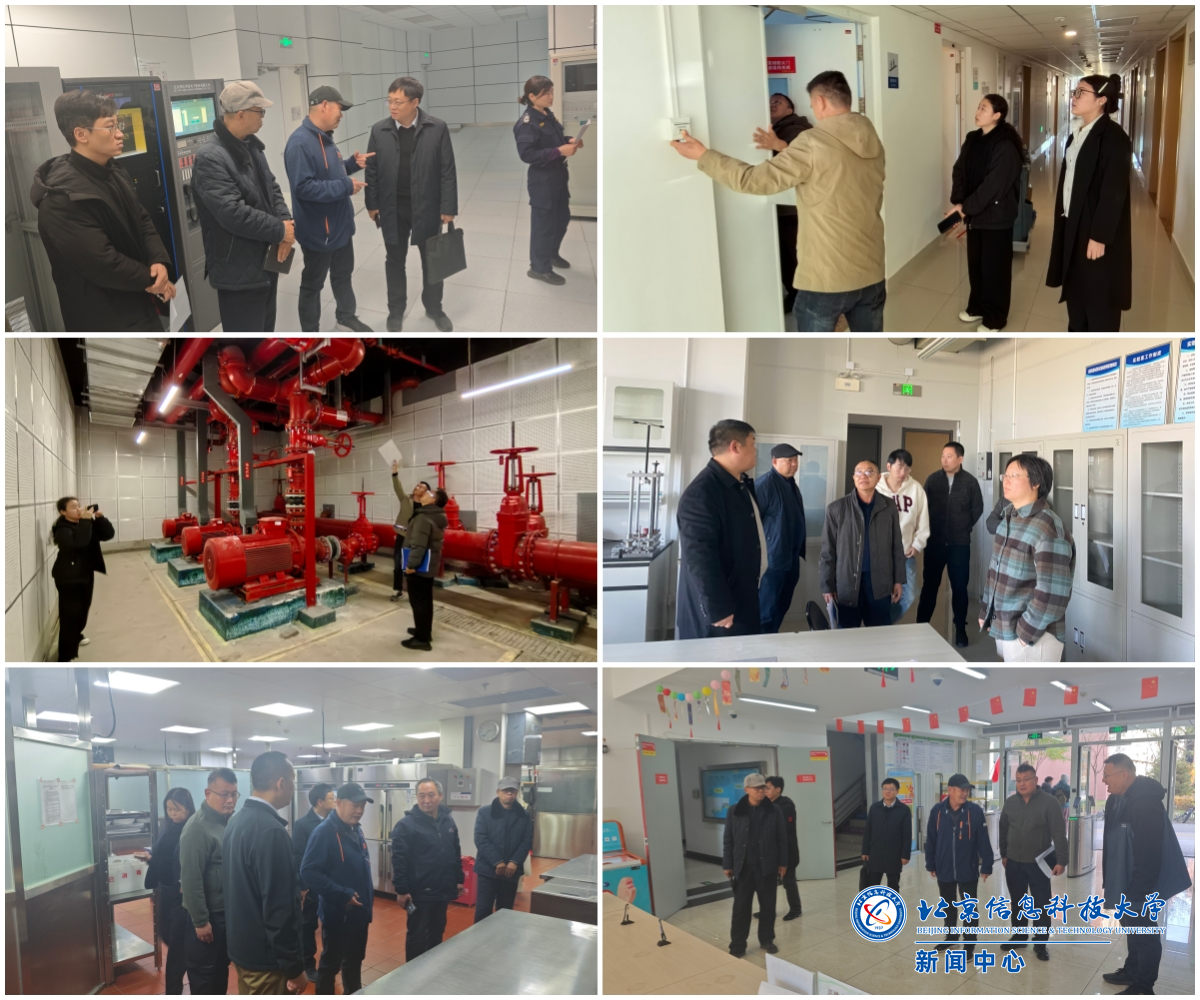 在实地检查环节,消防安全检查组先后检查了立德楼西侧配电站、图书馆、安防监控中心、立德楼东侧电动自行车停放点等点位;安全生产检查组先后来到科研楼5层传感器实验室、文理楼A座一层电梯间、供暖中心等点位进行检查。专家们检查细致,不时询问有关问题,有针对性地提出了改进意见。