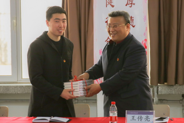王传亮向机器人工程1701班同学赠送冯友兰先生的《中国哲学简史》,勉励同学们脚踏实地,认真做学问。