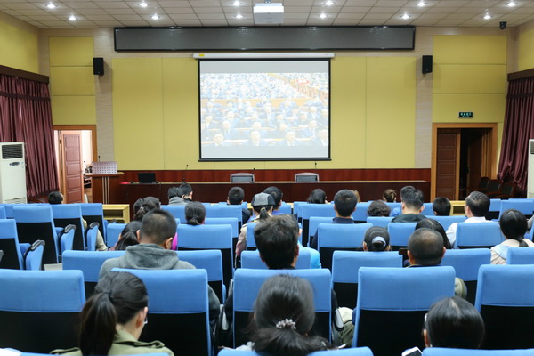 广大干部师生在会议室、教室、实验室、教研室等场所认真组织收听收看。