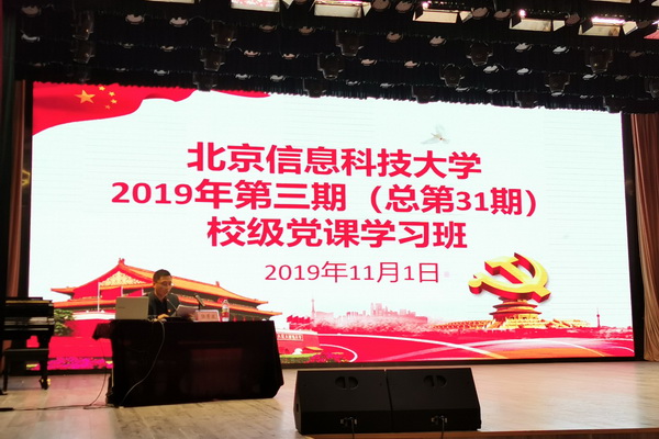 11月1日下午,学校党校2019年第三期学习班开班仪式在清河小营校区大学生活动中心和健翔桥校区图书馆报告厅(现场网络直播)同步举行。中国管理科学学会红色管理研究所副所长简振新,学校离退休党委副书记、关工委主任孙毓仁,以及4名优秀的学生代表:机电学院何亚飞、通信学院贺怡然、经管学院温世彬、理学院孔令娟受邀出席开班仪式并做报告。开班仪式由党委组织部正处级组织员兼党校常务副校长张景波主持。