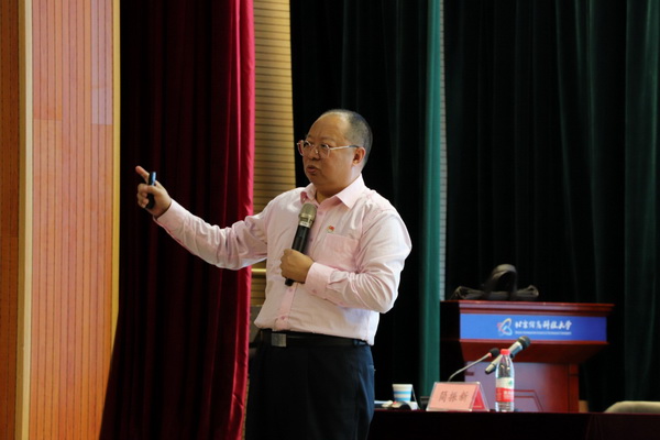 简振新教授从回眸初心,强化责任担当;检视初心,找准突出问题;践行初心,主动奋发有为三个方面对“不忘初心、牢记使命”作出深刻阐述,通过讲理论、提高认识,讲历史、借鉴经验,讲案例、传授方法和学员们分享了他对《中国共产党人的初心》这一课题的学习研究成果。