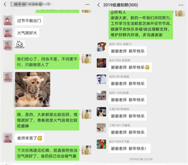 类似的事情是学工队伍都会遇到的问题,微信朋友圈和微博等成为了大家密切关注的对象,发现困难就第一时间解决,遇到问题敞开沟通。就这样,师生形成了共同价值观同盟,坚定了这次战“疫”胜利的信心,也为后期的工作打下了良好的基础。