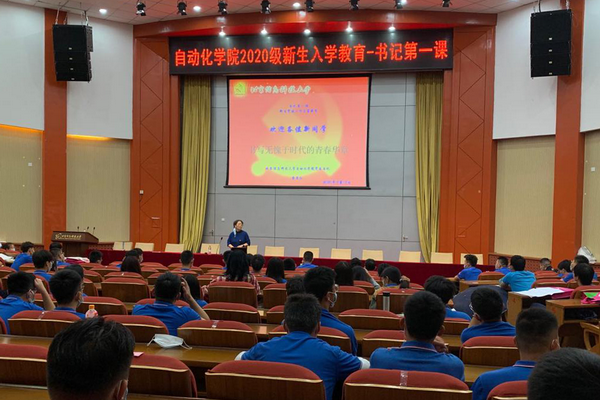 9月23日,自动化学院2020级新生教育之书记第一课分3场分别在小营校区、清河校区举行。学院党委书记曹晋红为新生讲授题为《书写无愧于时代的青春华章》的第一课,内容涵盖央视《开学第一课》、《习近平给北京大学援鄂医疗队全体“90后”党员的回信》、习近平总书记在全国高校思想政治工作会议和全国教育大会系列讲话、学生党员发展及成长等内容。