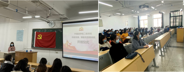 10月27日下午,外国语学院党总支在小营一教W42举行了二级党校开班仪式暨第一期党课。学院党总支书记贺芳、学生工作负责人周宇、组织员余志超、辅导员冯小娟、71名积极分子及13名预备党员参加了本次活动。
