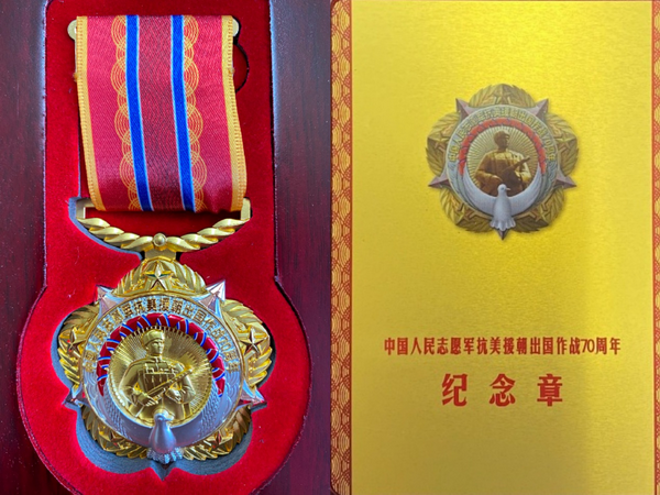 中共中央、国务院、中央军委共同向参加抗美援朝出国作战的、健在的志愿军老战士老同志等颁发“中国人民志愿军抗美援朝出国作战70周年”纪念章。