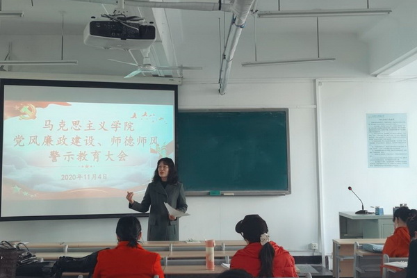11月4日下午,马克思主义学院组织全体教师召开党风廉政建设、师德师风警示教育大会,进一步强化廉政和师德意识,促进党风廉政建设和师德师风建设落地生根,构建风清气正的育人环境。