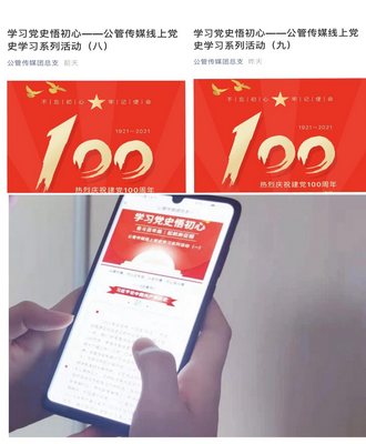 学院团总支利用公众号“公管传媒团总支”推出“学习党史悟初心”系列党史学习活动,以介绍习近平总书记重要讲话以及有关党的历史知识为基础,在党史学习中不断提高思想认识和政治站位,努力做到学史明理、学史增信、学史崇德、学史力行,学党史、悟思想、办实事、开新局。近半月来,公众号推出党史学习文章10期,阅读人数达到近700人次。