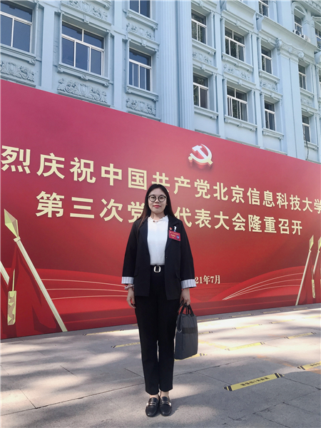 马克思主义学院学生 慕文蓉 王传亮书记在大会报告中提到,过去的七年是快速发展、整体提升的七年。对在信息科大度过7年求学岁月的我来说,感触尤为深刻。我亲身见证了信息科大优势学科的发展壮大,学校文化的凝练提升,声誉影响的持续上扬,我深深地感到骄傲和自豪。更让我激动振奋的是,在本次的报告中我看到了学校发展新的宏伟蓝图,学校提出了办学85周年、90周年、100周年3个发展目标蓝图,聚焦国家“十四五”规划和2035远景目标,深刻体现了与时代发展同频共振、服务国家首都社会发展的办学追求,我相信有习近平新时代中国特色社会主义思想的科学指引,有北京市委市政府的深切关怀,有学校党委的坚强领导,有全体师生勠力同心的努力,信息科大一定会朝着信息特色鲜明的高水平应用型大学的目标大步迈进,迈上跨越式发展的新征程!