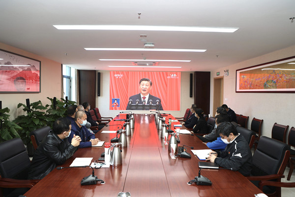 学校各民主党派成员、无党派人士、少数民族学生代表在小营校区三号办公楼第一会议室集体观看大会开幕。