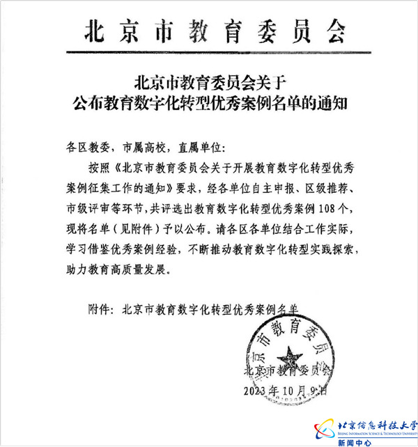 日前,北京市教育委员会公布教育数字化转型优秀案例名单,共评选出优秀案例108个。taptap点点信息与网络管理中心黄芳、程会敏、赵俊坤申报的《紧密围绕师生课堂体验,进行新校区智慧教学环境建设》案例获评北京市教育数字化转型优秀案例。