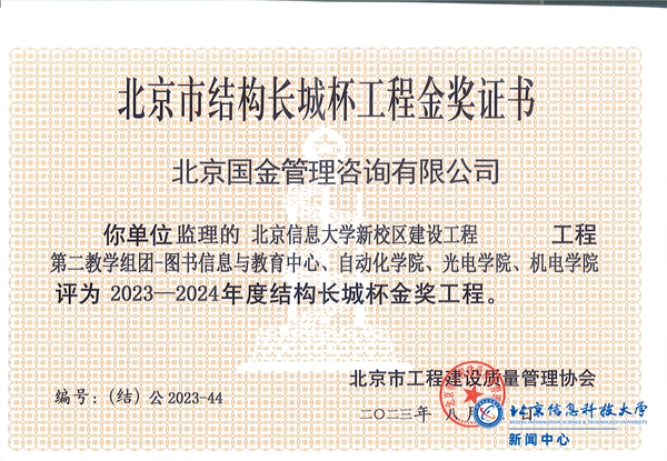 近日,新校区建设工程第四标段(图书馆与工学楼)项目获2023-2024年度北京市建筑(结构)长城杯金奖,这是该项目继获评“北京市绿牌工地”后,再次获得的北京市级荣誉奖项。