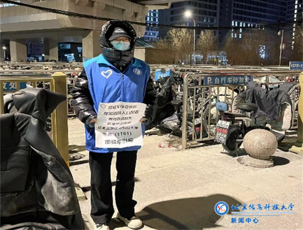 12月23日,晨曦初起、天尚未明,沙河校区地铁站人来人往,志愿者和老师们早已就位,身穿蓝色马甲的志愿者们举着“欢迎信息科大考生”的牌子,满怀热情地等候着考生们的到来。“别着急,慢慢找,我帮你提包”,他们关切地提醒着考生:“接驳车在前面右拐,免费接送考生。”虽然天气寒冷,但志愿者们的热情让人感到温暖。