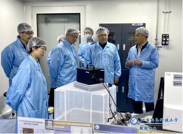 在教育部重点实验室主任祝连庆教授的陪同下,杨洪福一行参观了光电测试技术及仪器等两个教育部重点实验室,观看了实验设备操作演示,听取了实验室对光纤传感与系统、新一代超晶格红外探测器、光电子集成计算芯片等光电检测与智能感知技术研究和应用情况的介绍。