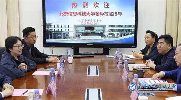 4月26日下午,招生就业工作处处长王蕾、信息管理学院党委书记谌兵一行4人赴北京市第十七中学,代表学校与北京市第十七中学签署“优质生源基地校”合作协议。北京市第十七中学校长曾广华、副校长白雪峰出席仪式。