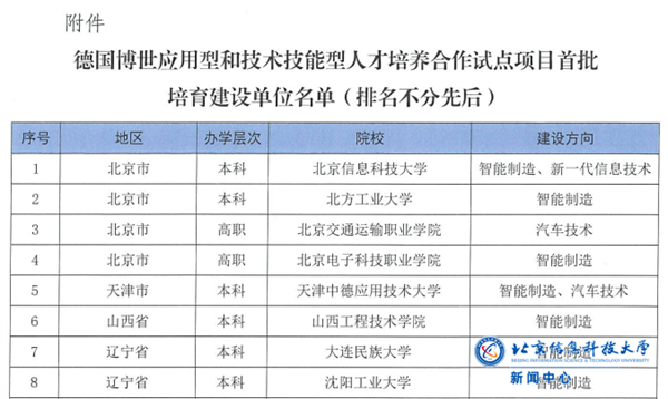 2020年,教育部与德国罗伯特·博世有限公司以换文形式,签署《中华人民共和国教育部与德意志联邦共和国罗伯特·博世有限公司关于深入推进产教融合在华开展“双元制”职业教育和应用型人才培养合作的谅解备忘录》,合作共建德国博世应用型和技术技能型人才培养合作试点项目。为了保障项目的有效实施,教育部国际司委托高校毕业生就业协会具体落实、推进该项目。试点项目对标德国应用型和技术技能型人才培养标准,面向智能制造、汽车技术、新一代信息技术等专业领域,遴选50所符合条件的高水平应用型本科院校、高等职业院校作为试点院校,由博世公司与院校共同开展应用型和技术技能型人才培养国际合作,推动校企合作办学模式和人才培养模式改革,逐步形成产教融合双元育人人才培养新模式,为我国相关产业奠定人才基础,服务区域经济和产业高质量发展。