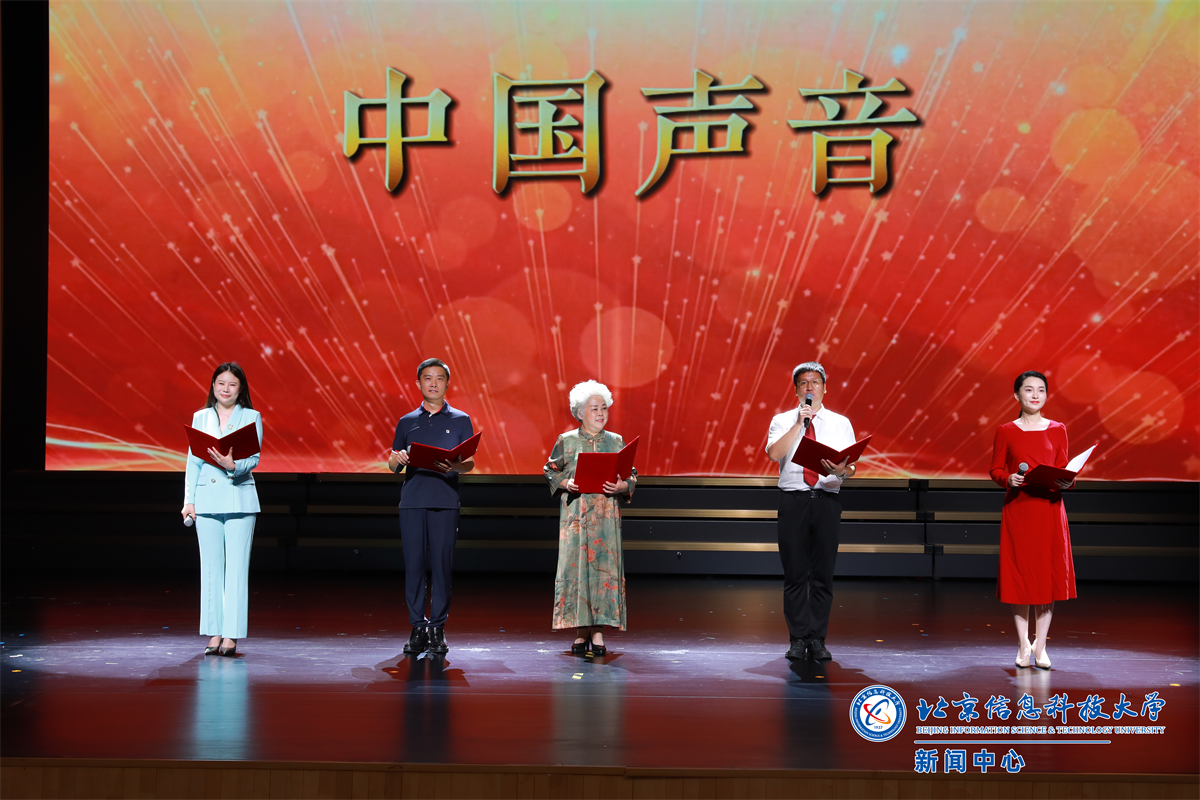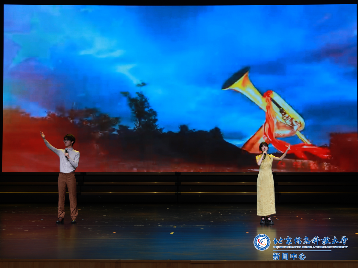 时代强音:校地联合节目《中国声音》(袁丁、程丽珠、毋政印、张雪竹、刘阳)铿锵有力,传递奋进新时代的磅礴力量;学生郝福林、郭颖琪带来的《吹号者》,带领观众感悟建党精神,赓续红色血脉。