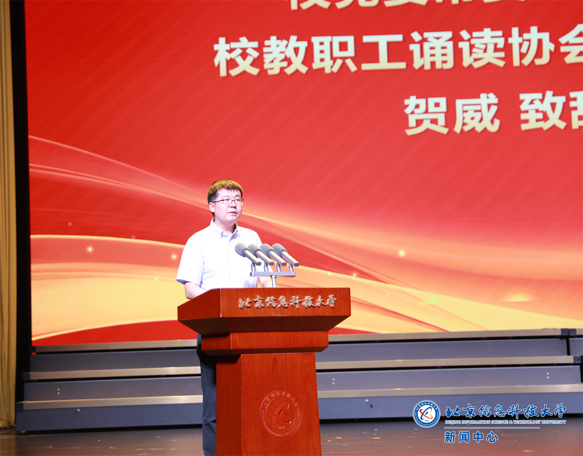 贺威在致辞中高度评价了此次合作里程碑意义。他指出,作为扎根昌平的高校,服务区域发展是学校使命。本次合作演出,生动展现了“高校+地方”文化共同体的蓬勃活力。他期待未来深化合作,让诵读之声成为昌平文化版图的闪亮坐标。贺威对诵读协会提出殷切期望:一要举旗帜,以诵读讲好党的故事、中国故事、教育故事;二要育新人,打造精品诵读,让美育浸润心灵;三要促融合,深化与昌平文联、朗协联动,开展“名家进校园”,让文化清泉在校地间流淌。他勉励协会将诵读打造成思政教育的新课堂、文化育人的金名片。