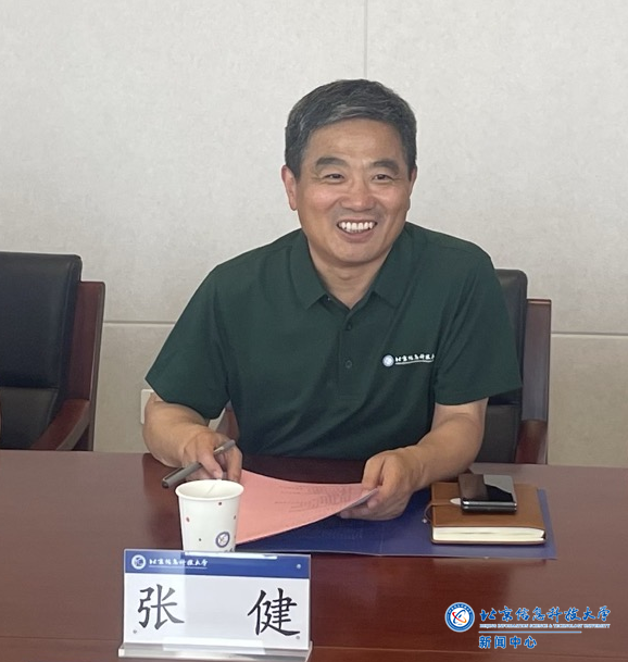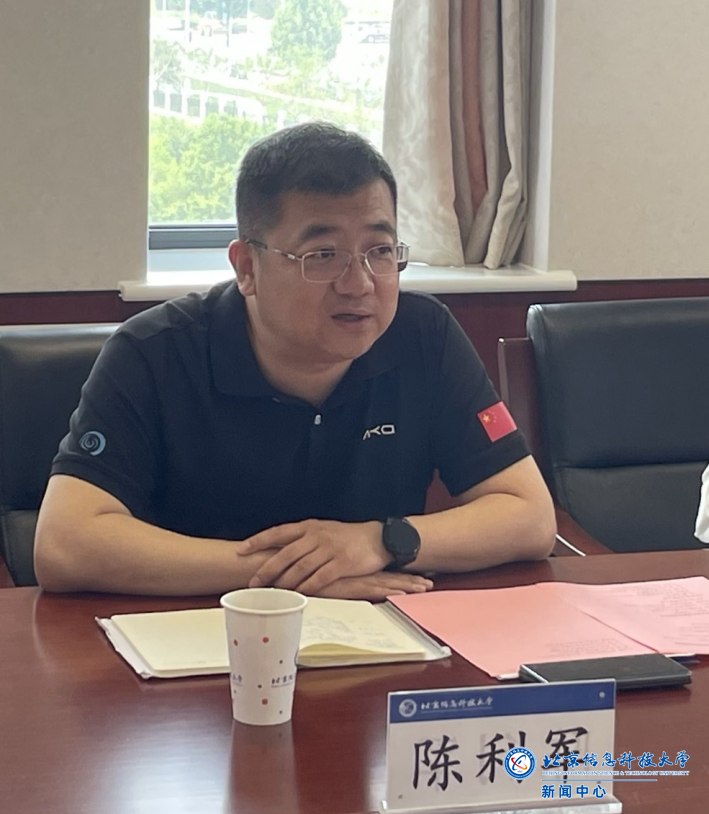 张健代表学校对陈利军一行来校调研交流表示热烈欢迎。他介绍了学校的红色基因、发展脉络、办学特色、科研优势领域以及办学空间布局等方面情况,特别强调了学校近年来聚焦国防特色所进行的一系列探索实践和取得的突出成果。张健表示,信息科大与北京创新爱尚家科技股份有限公司联系紧密,具有很好的合作基础,希望双方以此次调研交流为契机,进一步深化合作,共建产学研协同平台,推动高校智力资源与汽车智造应用双向赋能。
