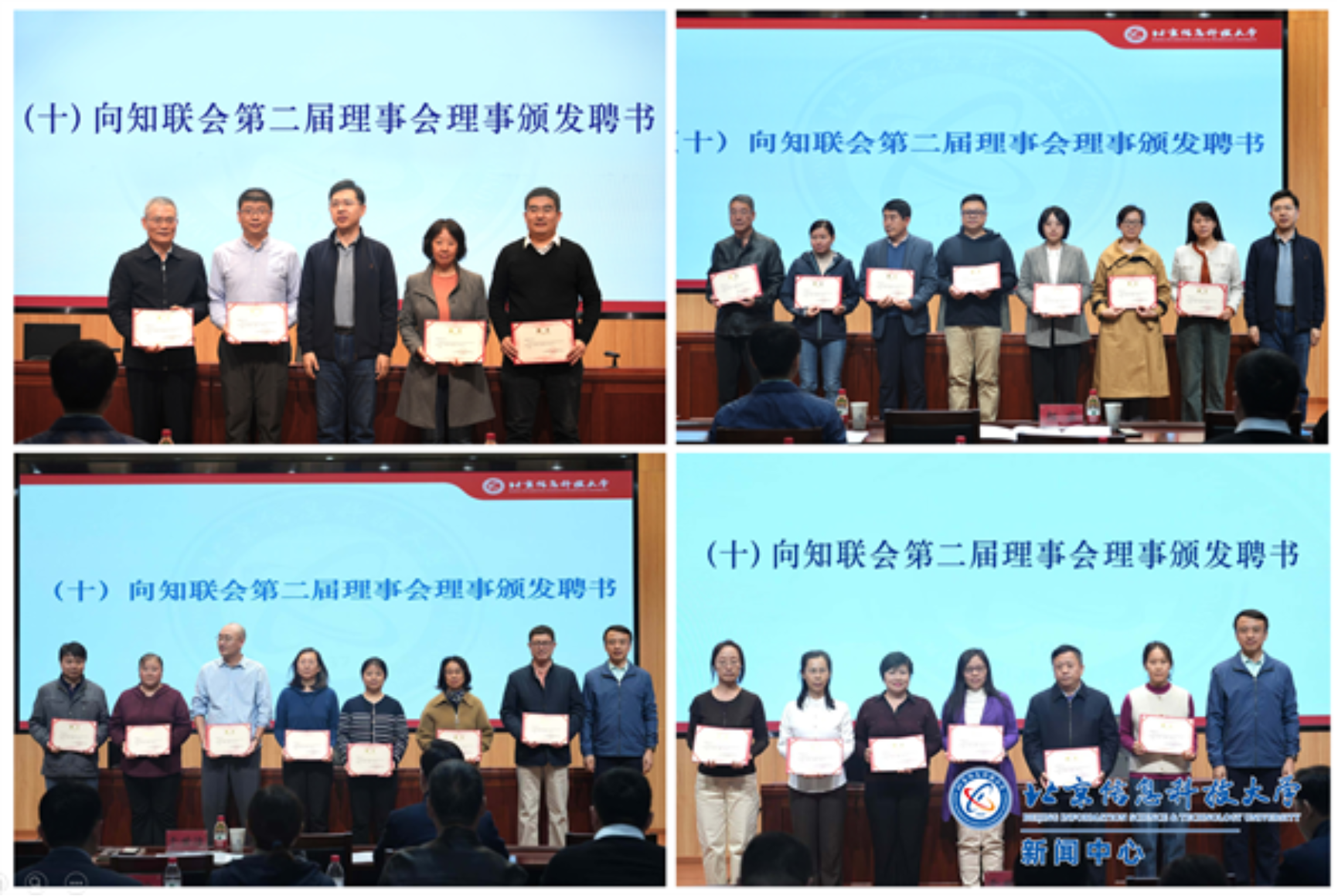 相京、于世洁分别向新当选的知联会第二届理事会会长、常务副会长、副会长、秘书长及理事颁发聘书。
