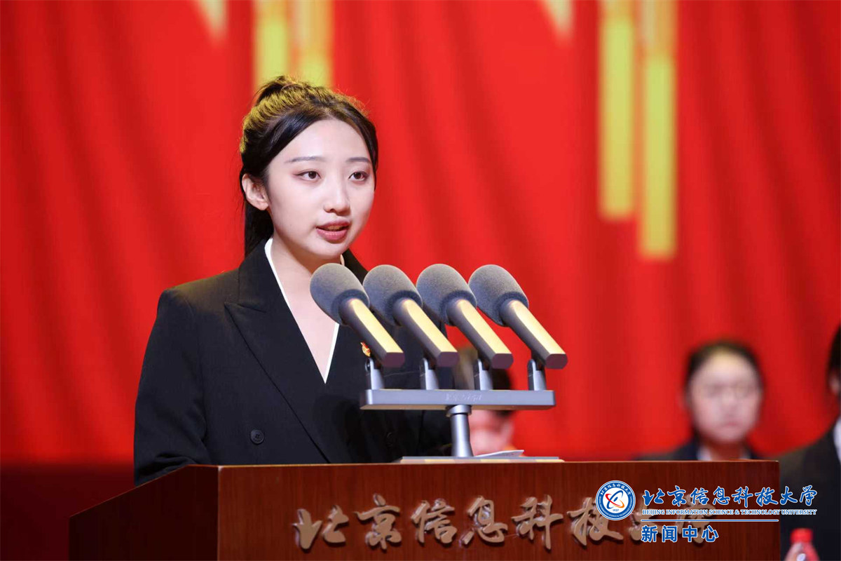 校学生会执行主席张渊雅代表taptap点点官方网站第七届学生会作题为《铭记历史初心,赓续精神力量,践行青春誓言,共推复兴伟业》的工作报告。