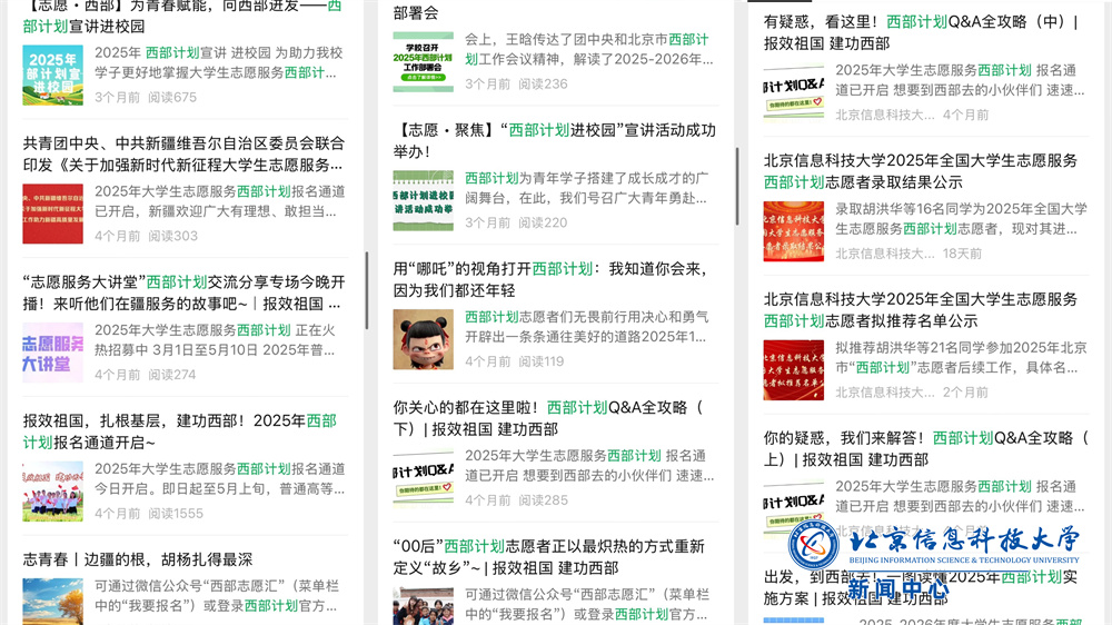 为落实团中央和北京团市委相关工作要求,深入推进共青团促进大学生就业工作,进一步扩大西部计划影响力,taptap点点于今年3月启动了西部计划宣传与志愿者招募工作。在学校党委的高度重视下,校团委联动各学院团委(团总支),采取“线上+线下”双渠道宣传模式,围绕政策解读、志愿故事等内容发布西部计划系列推送近40篇,举办3场宣讲活动,在食堂、教学楼等人流密集区域设置西部计划宣传展板,形成了到建设西部、奉献基层的浓厚氛围,吸引了超过200名学生从各渠道咨询,70余名学生填写报名系统。