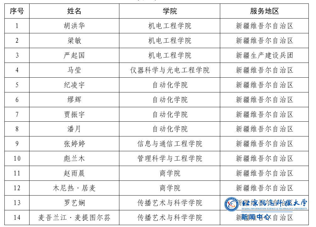 学校2025年全国大学生志愿服务西部计划志愿者名单