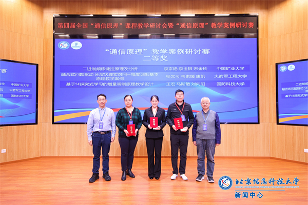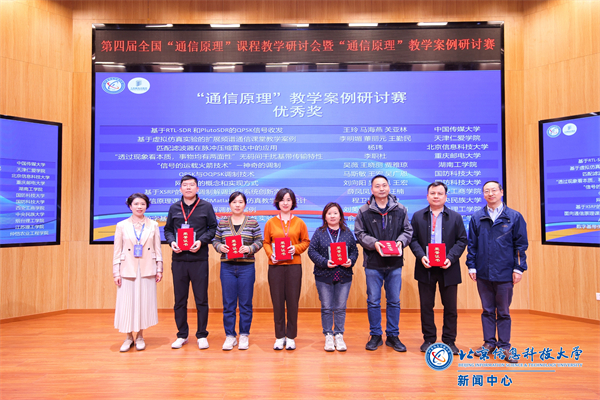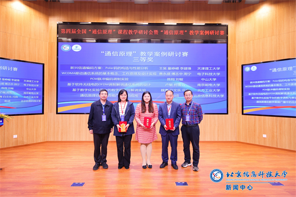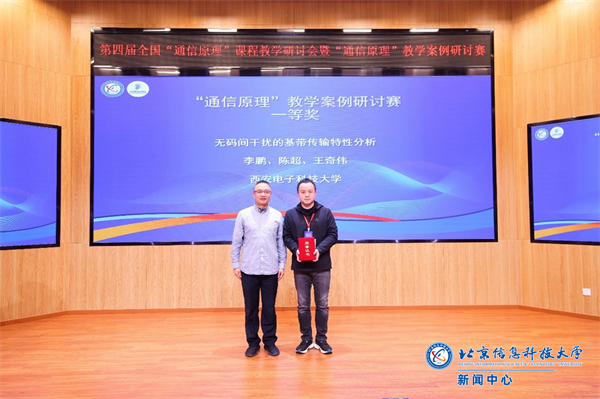 与会专家为“通信原理”教学案例研讨赛获奖选手颁奖。