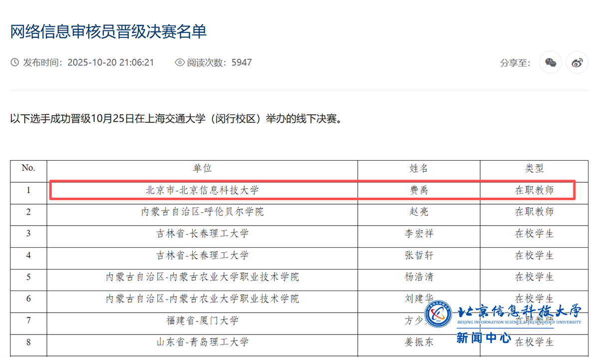 2025年高校网络安全管理运维赛-网络信息审核员决赛成绩排名